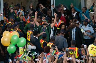 Members of South Africa’s Rugby World Cup-winning squad have arrived home, where thousands greeted them with cheers at Johannesburg’s international airport