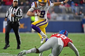 Joe Burrow threw for 489 yards and five touchdowns as No. 1 LSU built a big lead and held off Mississippi 58-37 on Saturday