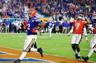 Florida’s Lamical Perine scored on a 61-yard run in the opening minute of the Orange Bowl and didn’t stop after that