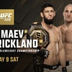 UFC 328 is set for Saturday, May 9 at Prudential Center, headlined by a middleweight championship clash between unbeaten titleholder Khamzat Chimaev and former champion Sean Strickland.